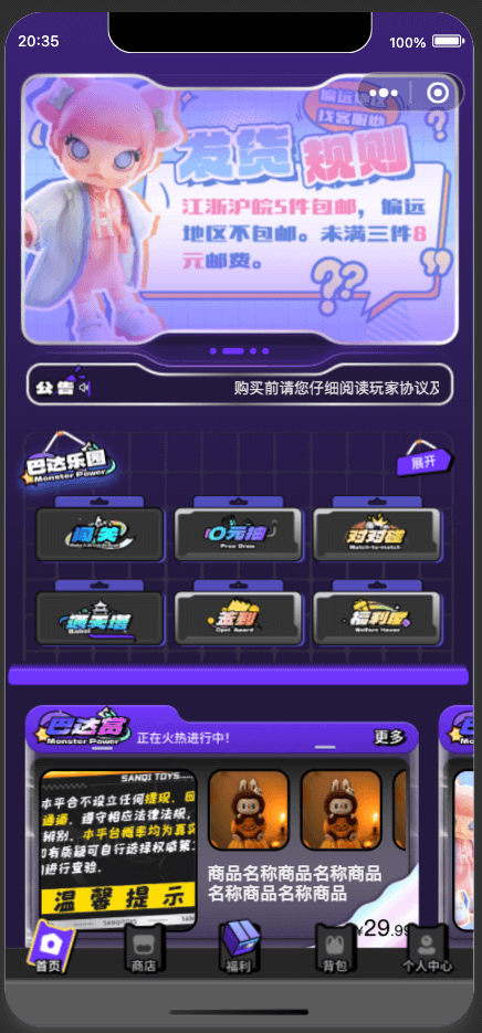 1、为广大消费者们带来各种时尚潮玩商品,可以让大家在这里轻松购物,所有的时尚潮流商品全部都是正品保障,大家也可以在这里放心购物;
